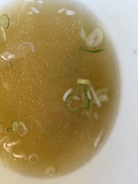 透き通ったつゆにチャーシュー3枚。刻み葱が中央にあるシンプルラーメン。