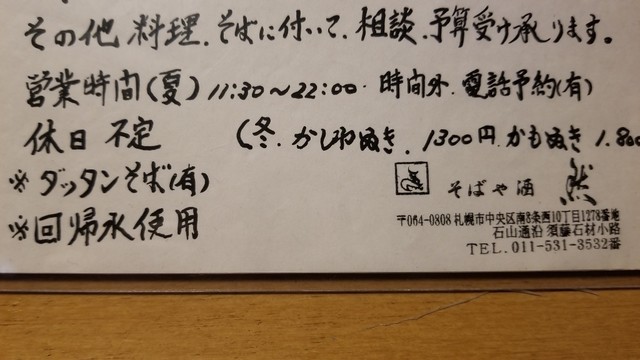 そばや酒 然(山鼻9条、東本願寺前、中島公園通/そば、ふぐ、すっぽん)