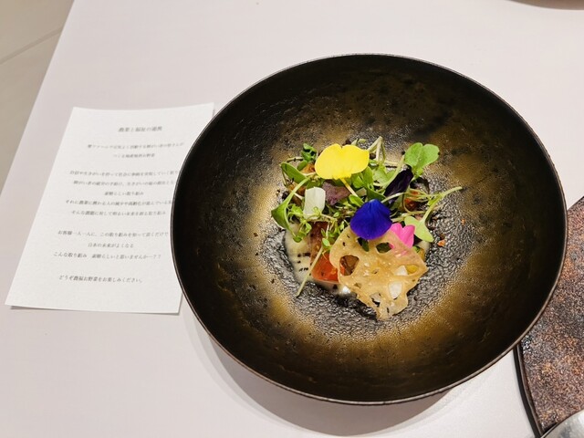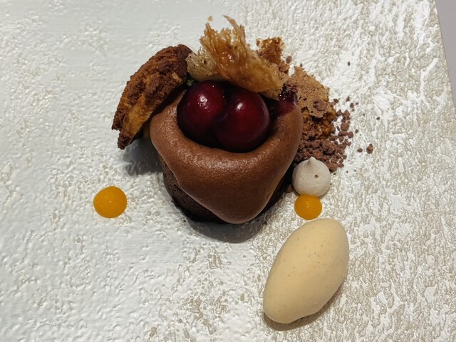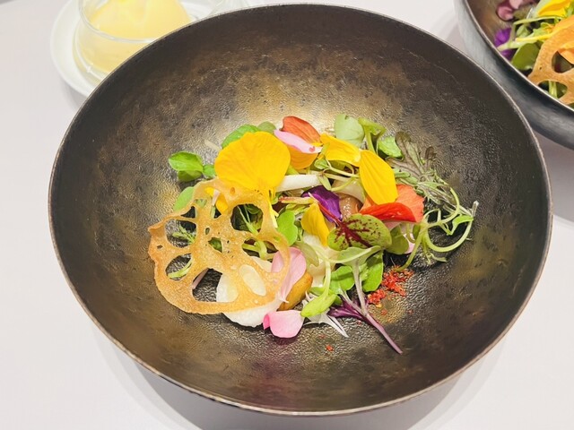 葛原シェフがシンガポール旅行や年末に京都にノーマが来た時に食事をした体験から、イカの出汁のソースを取り入れたとのこと。