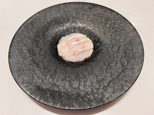 白子の熱が加わり香りが立つような仕立てになっており、タピオカ粉を纏わせたところはもちっとした食感に仕上がっています。