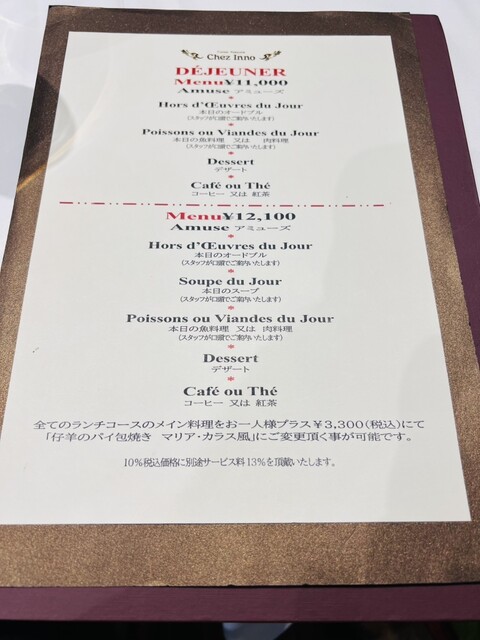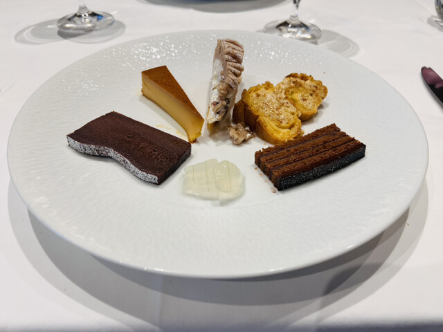 14,850円(税込)のコースのメインをマリア・カラスに変更(+3,300円(税込))し、更に前菜にフォアグラのキャベツ包み8,800円(税込)を追加し、小さなポーション2つにして調理していただきました。