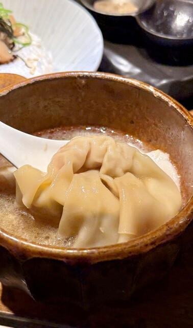【帆立出汁と昆布出汁のつけ麺】+わんたん☺️