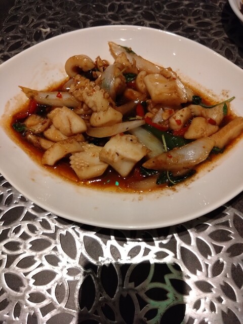 イカのバジル炒めは、濃いめの味付けでお酒が進む。