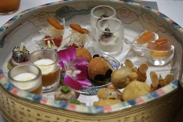 念願だった"星のや 沖縄"のダイニングで頂く琉球料理×シチリア料理のフルコースになります。利用は宿泊者のみ。今回のコースメニューは以下の通りになります。