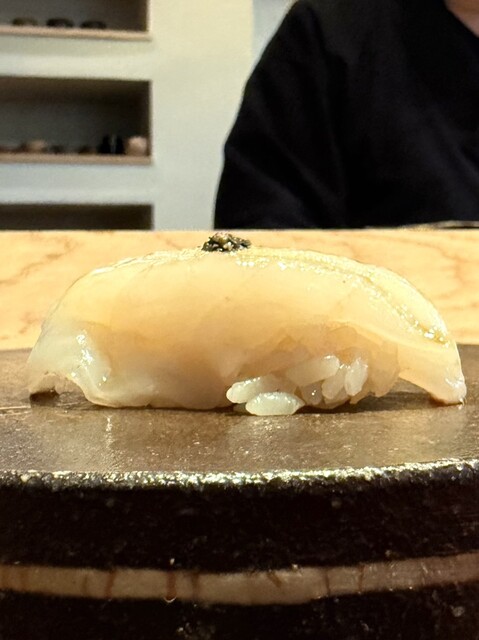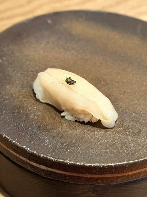 コリッとした口当たりに、軽やかな旨みが広がるネタ。アンコールペッパーのアクセントが他にない。