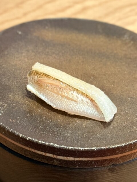 ここまで肉厚に食べられるキスの握りも珍しい。気品のある白身の旨みに加え、しつこさのない良い脂感がある。淡白な魚のイメージだけれど、とんでもない。