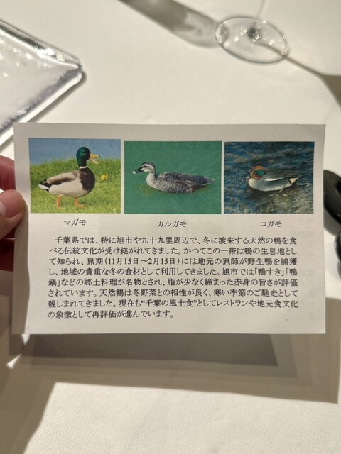 ・山武産 天然網取り真鴨(ムネ、モモ、ササミ)炭焼き、カステルフランコ、ベリーのソース