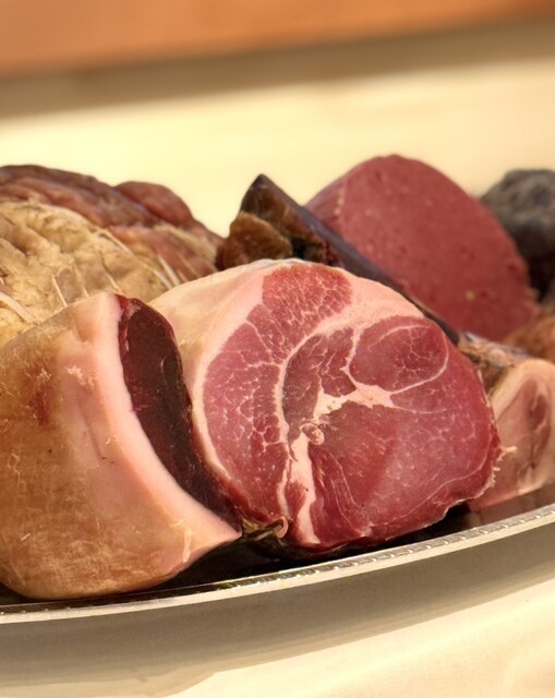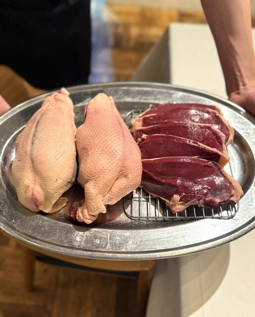 もはや圧巻…!一流のシャルキュトリー専門店でも驚くレベルではないでしょうか。全て千葉県産、使用するは、シカ、イノシシ、ジャージー牛、ダイヤモンドポーク、キョン。左下には、スベリヒユのフリットに、ベーコンの脂部分を使用したラルド。あまりに美味しい…。焼き立ての芳ばしい小麦香る自家製パンに乗せながら食べるのが至高過ぎる。どれも抜群ですが、特に驚いたのは、キョンのモルタデッラ。独特の香りと、他の動物にはない旨みがフワッと口に広がりました。