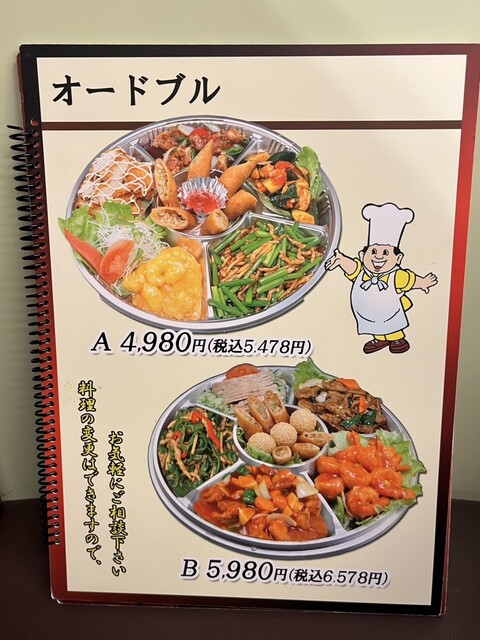 天津飯、マーボ豆腐、海鮮おこげ、餃子、ライスを注文して待ちます。