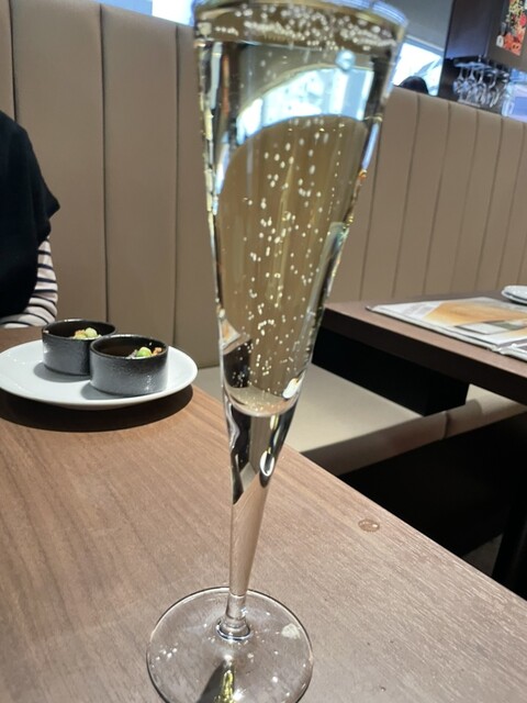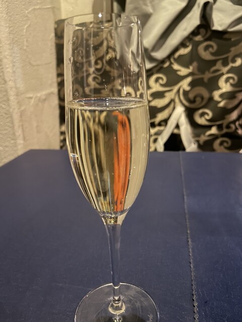 スパークリングワインで乾杯。コースの内容は