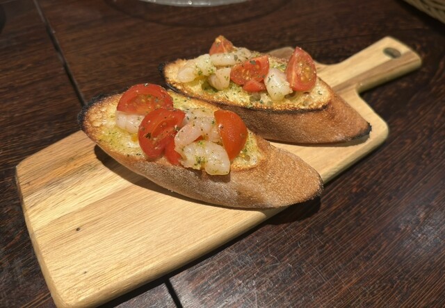 今回はヤリイカフリット、エビとトマトのバゲット、サーモン、ホタテとほうれん草のパスタをオーダー。