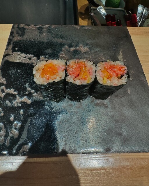 福島駅は最近色んな飲食店ができていますが、今年6月にオープンした鮨あさひさんは、その中でも最も勢いのあるお鮨屋さんだと思います。今回で3回目の来店ですが、毎回、驚かさせれます。お鮨を食べる機会が多いのですが、ここはトップクラスに美味しいです。しかも、値段も他のお店より2割は安いと思いわれ、ハイコスパ間違いなしです。本日も最初にシャリの海苔巻きを頂きました。ここのシャリは本当に美味しいです。それがさまざまな魚とコラボして、口の中で絶妙なハーモニーも奏でています。本日はコース料理にうに、牡蠣、トロタクを追加しました。本日特に美味しかったのは、ウニ、トロ、白エビでした。大将はめちゃくちゃ謙虚で、美味しい料理を楽しんでもらいたいという感じが伝わってきます。有名店になっても今のままの大将でいてくれたらと思います。次は来年一月に予約を取って帰りました。本日はご馳走様でした。
