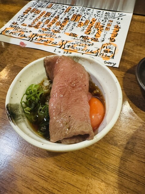 キムチ盛り合わせ、タン元、焼きしゃぶ(ハネシタ)、焼きすし(ハネシタ)、上カルビ、サガリ、ハラミ、本日のおすすめ品、ドリンク4杯を注文しました。お肉はどれも本当に美味しくて、すべてが超一流です。今回二人で来店したのでシャトーブリアンを注文せず焼きすき、サガリ、ハラミ、上カルビを注文しました。中でも上カルビは今まで食べたことのないくらい美味しいカルビで、絶対に注文すべき一品です。胃袋の大きさが限られてるので、毎回どのお肉を食べるのか悩ましいところです。可能ならタン元、焼きしゃぶ、焼きすき、上カルビ、シャトーブリアンは食べた方が良いです。お腹に余裕があればハラミも食べれると良いと思います。