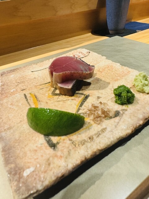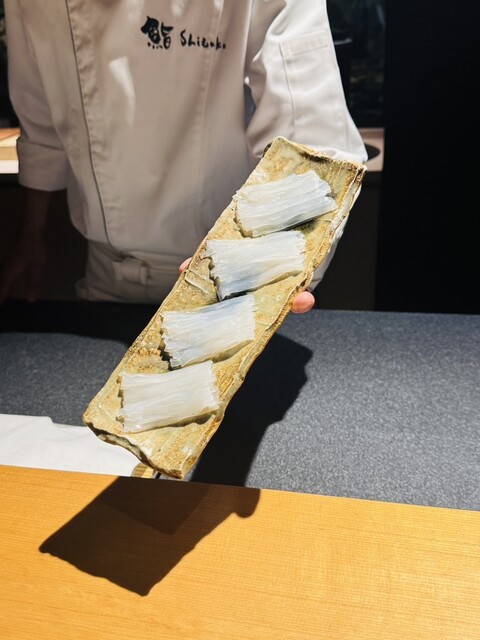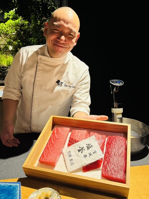 鮨コースにトロタク、エビマヨを追加し、ドリンク2杯で3.4万円くらいでした。特に美味しかったのは、ドンチッチ鯵、アオリイカ(ウニのせ)、エビマヨ(手巻き)でした。川下大将から辛嶋大将、中瀬大将に変わって初めて伺いましたが、ネタの仕込みは変わらず素晴らしかったです。ただシャリが以前より硬く感じました。もともとshizuku西天満のシャリは絶妙な硬さで、噛むごとにシャリとネタが混ざりながら味が心地よく変化していくという感じでしたが、本日は、若干硬く感じました。ただこの日は小生の体調があまりよくなくて、味を正確に判断できていなかった可能性もあります。辛嶋大将は日本料理も得意であり、今後の一品料理にかなり期待できますし、中瀬大将はまだ若く勉強熱心であり、成長性が期待できるため、今後進化していくことは間違いないと思います。
