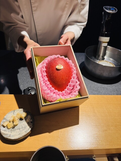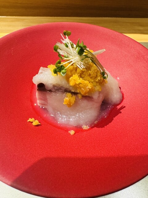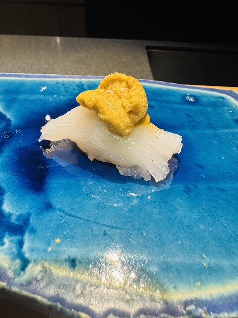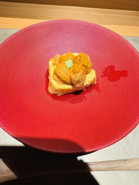 鮨コースに、由良の赤ウニの手巻き、大人のエビマヨの太巻きを追加、日本酒3-4合で一人あたり4.7万くらいでした。内容を考えると物価高騰の中この値段で食べれるのはかなりありがたいです。同伴者も喜んでくれたので、一緒に来た甲斐がありました。色々お鮨を食べにいくことが多いですが、ここのお鮨は唯一無二の創作鮨です。ネタに味をさまざまな味を追加し、噛むごとに口の中で味が変化していく、味のグラデーションを楽しめるお鮨です。シャリは少し硬めに仕上げており、ネタの味の変化していく過程でもシャリの存在が残るようにしています。本日特においしかったのは、由良の赤ウニ、大人のエビマヨ(太巻き)、アオリイカ、イシカゲ貝、穴子の白焼でした。由良の赤ウニはこの時期のみなので、来月来店した時も頼もうかと思います。