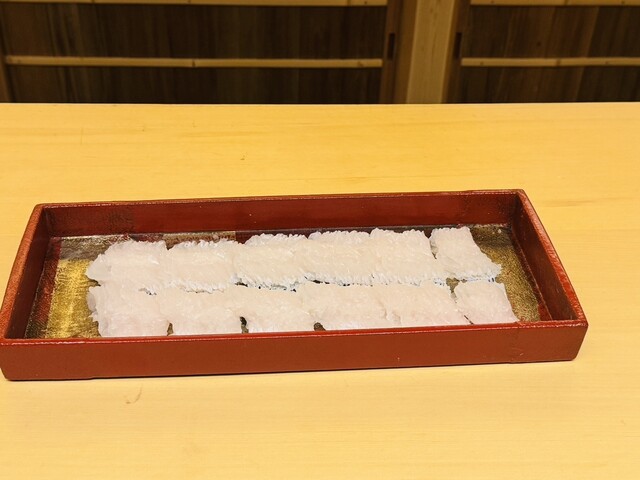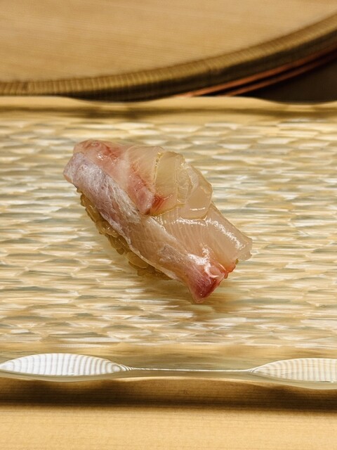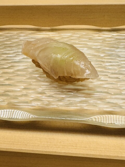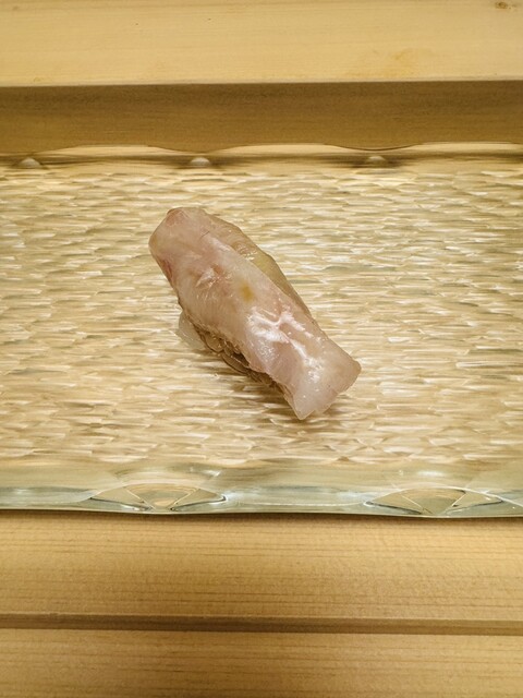 白身なのに脂がのっており、白身のトロと言われる理由がわかります。シャリの握り加減がネタと一体化しており、口の中で心地よくまざります。