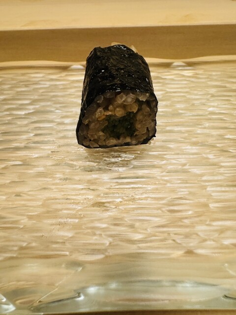 鮨コースとアルコール類、お弟子さんたちが作る細巻き全種類追加で4万ちょっとです。お鮨はすべて素材の味を最大限に引き出した旬のものを出してくれます。アレルギーで嗅覚が鈍っていたら、わからないような繊細な味です。噛み締めていくとほのかにかおるくらいに香りつけされてるが心地よいです。また、シャリとネタの一体感があり、シャリの温度も申し分ないです。これぞお鮨という感じです。特に美味しかったのが、タイラギ貝、ホッキ貝、サヨリ、コハダ、アオリイカでした。