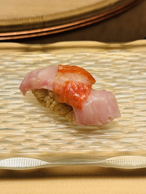 鮨コースに、漬けマグロ、フエダイ(お代わり)、穴子、ネギトロを追加し、黒龍八十八号(2020年度、2022年度製造品を各一合)、ビールなどを飲んで一人4.5万でした。ここのお鮨、一品物の全てが最高レベルに美味しいです。その中でも本日特に美味しかったのは、