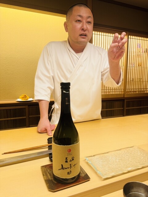 鮨コースに白甘鯛、ウナ胡巻き、ネギトロ巻きを追加し、貴重な日本酒である黒龍の『八十八号』だけでなく、これまた貴重な『刻の奏』(黒龍酒造、八海醸造、木戸泉酒造の3蔵のブレンドのお酒)も頂くことができ、4.5万くらいだと思います。料理の全てが美味しいです。特に美味しい料理を選ぶことが困難であり、強いていうなら小生の好みのネタである、
