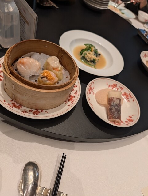 蒸し点心三種。海老や帆立がぶりぶりなのは勿論、下味しっかりで美味しい。