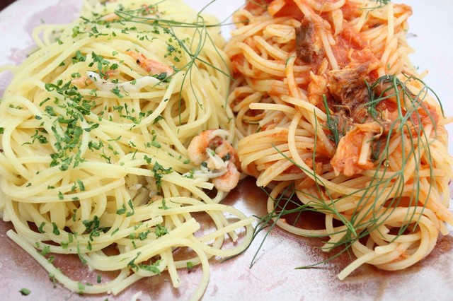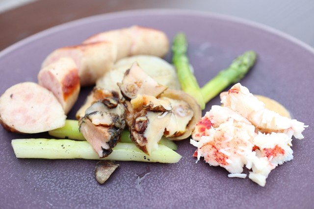 料理は綺麗に盛り付けられたサラダから始まり、牛肉、オマールエビ、パスタなどが次々に出てきます。