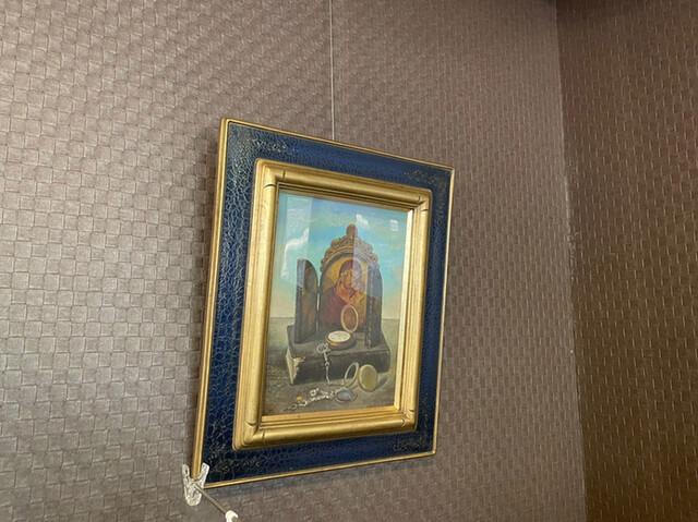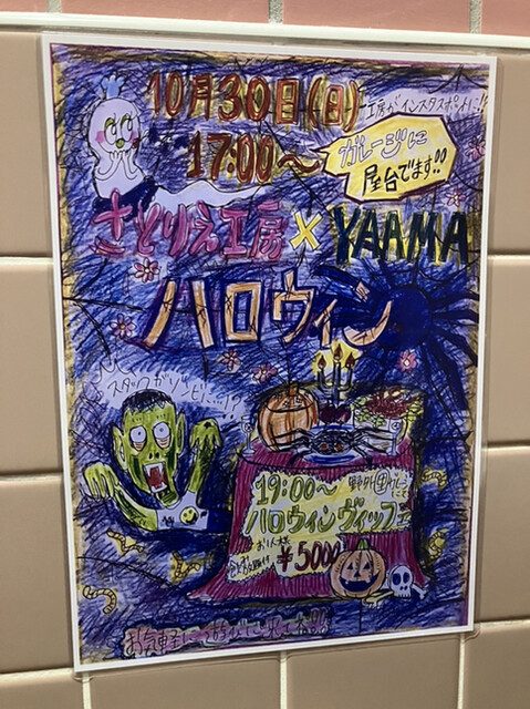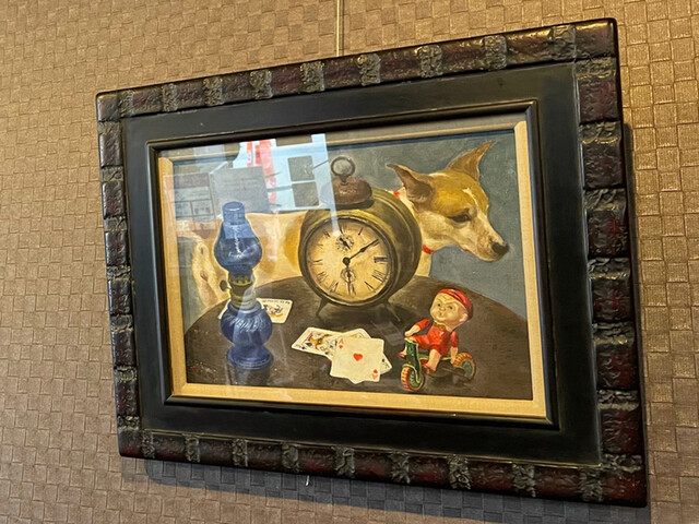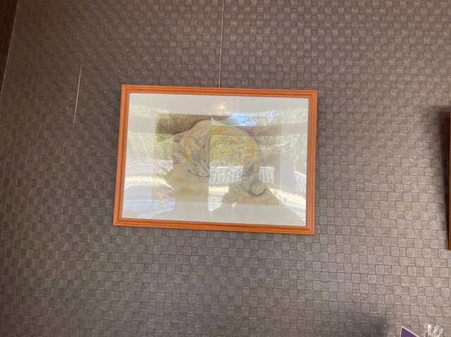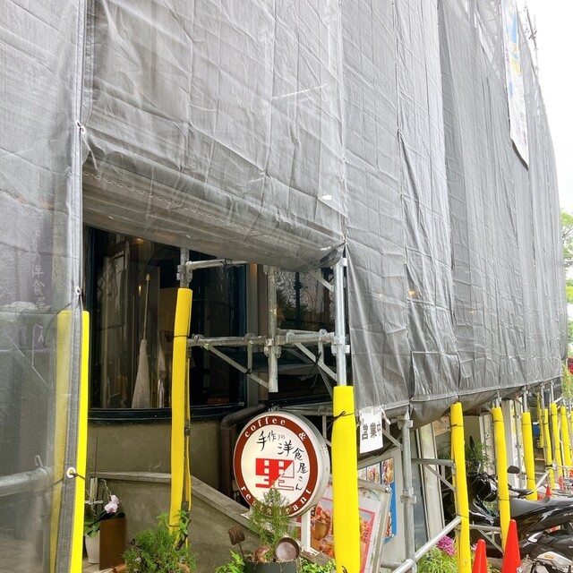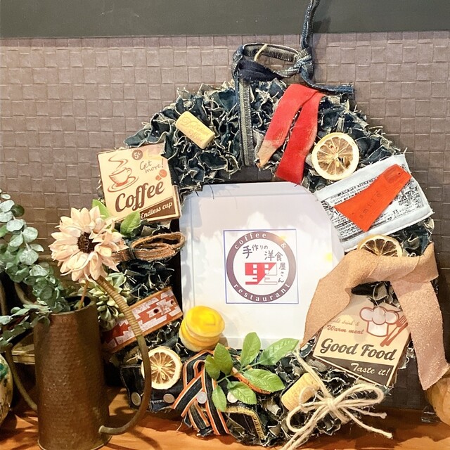 前回お伺いした時、味もさることながら壁に絵画がたくさん展示されているのを見て、相方が創作リースをマルシェ等で展示即売会をやってるんです♪とコチラの方にしゃべっていて、今回相方がアクションを起こしてみた所乗り気になってくださいまして、2回目のお伺いです。はじめ工事の幕をされていたのでやってるのかな〜と思いながらよーく見てみるとA4サイズの「営業中」の張り紙がありましたので入店‼️