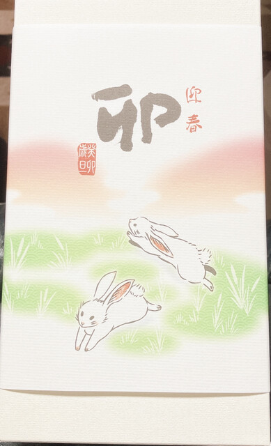 今日は田舎からお土産を持ってきてくれた「お正月たなごころ」花‥カステラ饅頭2個 桃山2個 にゃんと福招き4個の詰め合わせです。
