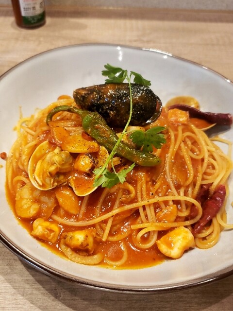 同行者の……★小海老とタラコのクリームソース(温玉添え)