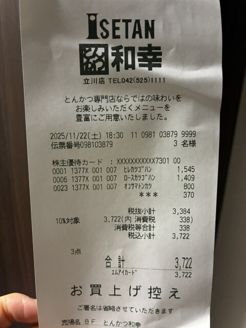 立川伊勢丹でご飯を食べるのは何気に初めて。