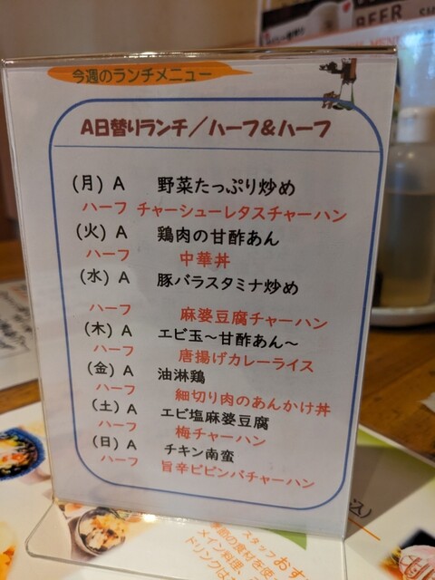 私「油淋鶏」妻子「エビと青菜の卵炒め」