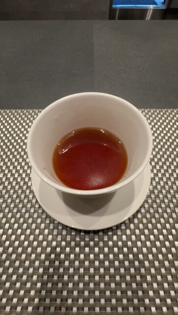 トマトのソース、青紫蘇のスープ