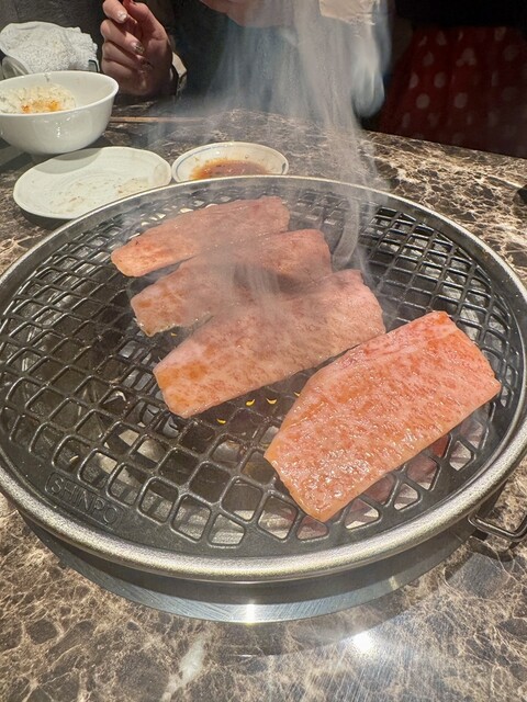タン元やアブシンなどの塩焼き、ハラミやカルビのタレ焼きも安定感があり、肉質の良さをしっかり堪能。〆の新宿限定・生肉キンパは断面の美しさと完成度の高さで必食。