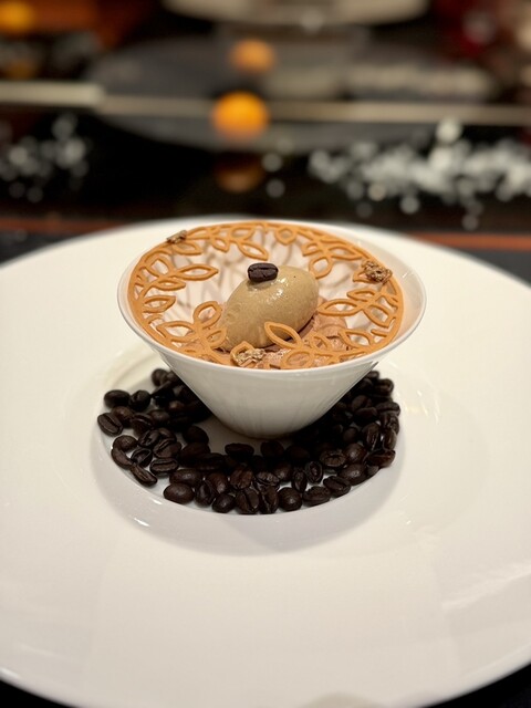 デザートのカフェ アラビカは、マンジャリショコラのムースが軽やかで、コースの締めに心地よい余韻を残します。