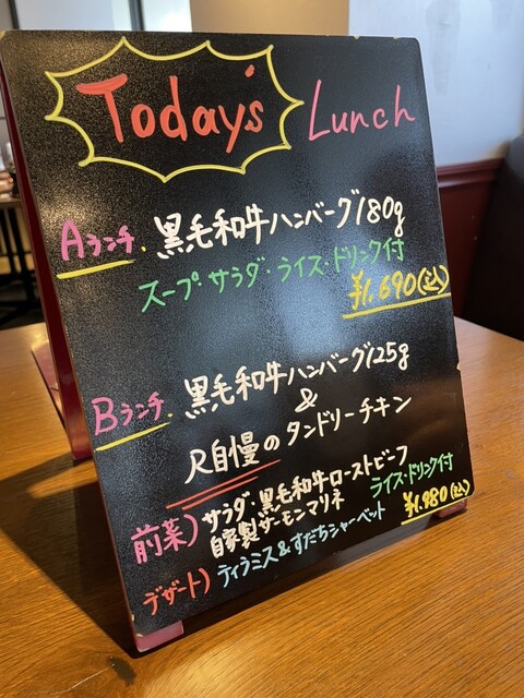 ・黒毛和牛ハンバーグ、タンドリーチキン、前菜、デザート、ソフトドリンク