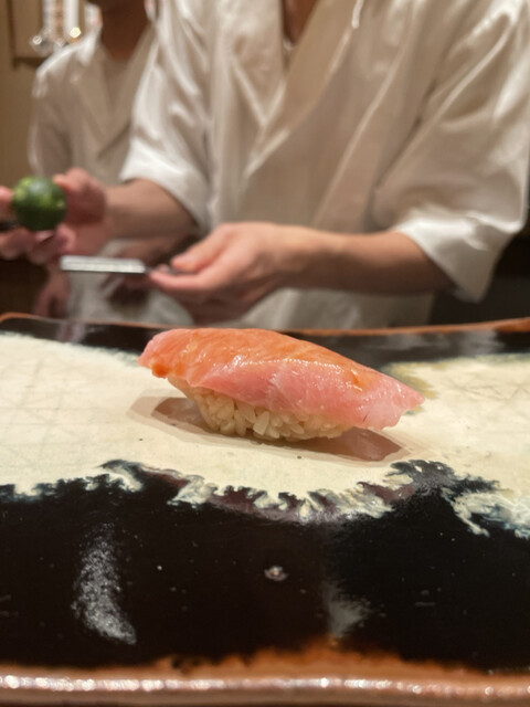 最初の一貫目は中トロ。鮪の脂と旨味が瑞々しく、口の中でとろけるよう。つまみでいただいた真鯛の造りは海の香りと淡い塩気が舌に残る。新物いくらは9月ならではの大粒で、酸味・甘味・塩味のバランスが絶妙。鱧と松茸の茶碗蒸しは出汁も相まって、素晴らしい逸品でした。また蒸し鮑やマナガツオなど季節を感じるつまみを堪能できました。
