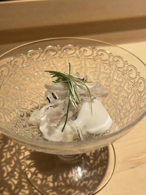 店内はカウンター中心で、15席前後(メインカウンター+サブカウンター)のこぢんまりとした空間。白木のカウンターや照明は温かみがあり、静かながら料理に真剣に向き合える雰囲気です。スタッフの提供タイミングや説明は程よい距離感で、活気と落ち着きが両立した空気感でした。