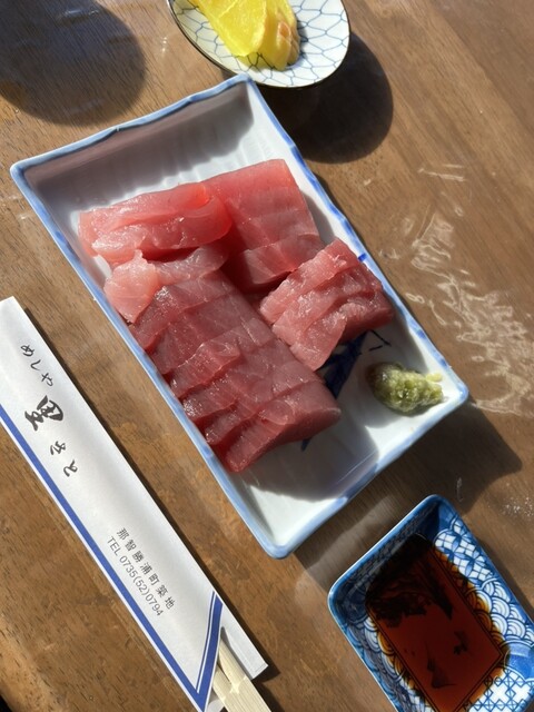 マグロ刺身16切れもあるし分厚い!味噌汁ご飯大盛りたくあんで、1100円は、安い!おすすめすぎる店!かなりローカル感あるけど大将も女将さんもめっちゃいい人!色々しゃべってくれて楽しかったです。朝の8時前から、腹パンでうごかれへんなる。