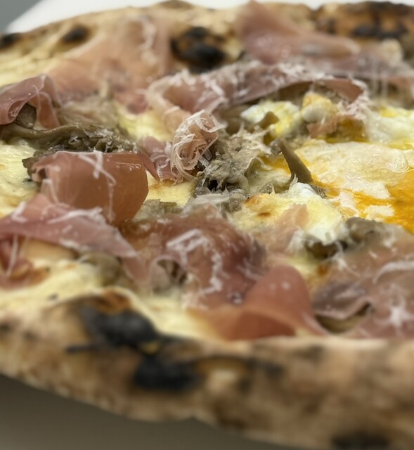 焼き上げられた舞茸の芳しい香りがたまらない一枚で、生ハムと卵との相性もバッチリ。これは美味しすぎる。