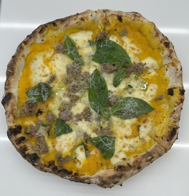ニンジンとサルシッチャのピッツァは限定メニューとのこと。