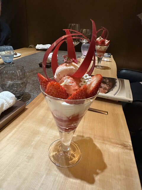 おっと更にお腹に余裕のある強者が シーズンパフェ 本日はイチゴパフェもばっくと頂いてます