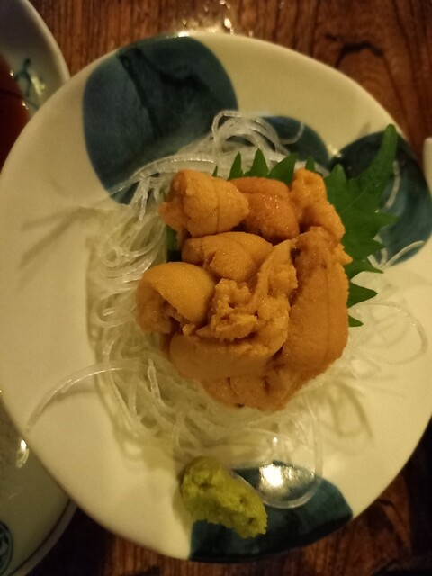 吟醸香漂う少し甘口の一杯を堪能しながら、満を持して、「生うに」を注文しました。