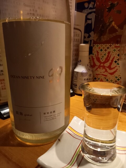 それから、私の好きなにごり酒「仙禽雪だるま 活性にごり酒(栃木)」(一合)、最近好みの「寒菊Ocean99 銀海(千葉)」(半合)、「天美 生原酒(山口)」(半合)を戴きました。