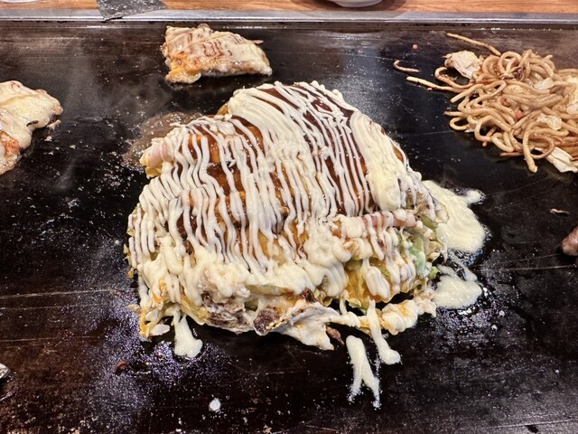 キムチ、ゲソから始めて、焼きそば、すなずり、とんぺい、お好み焼きのオモニスペシャルをオーダーした。