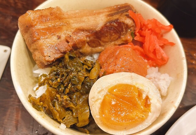 甘辛くてとろけるような角肉に明太をまぶして白米を食い、味玉にも明太や高菜をまぶしてまた白米を頬ばる…!