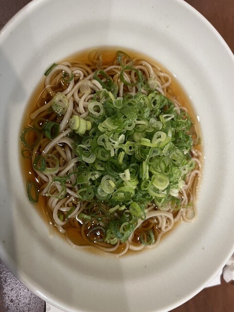 冷たい蕎麦に湯葉と青ネギのシンプルな構成だが
