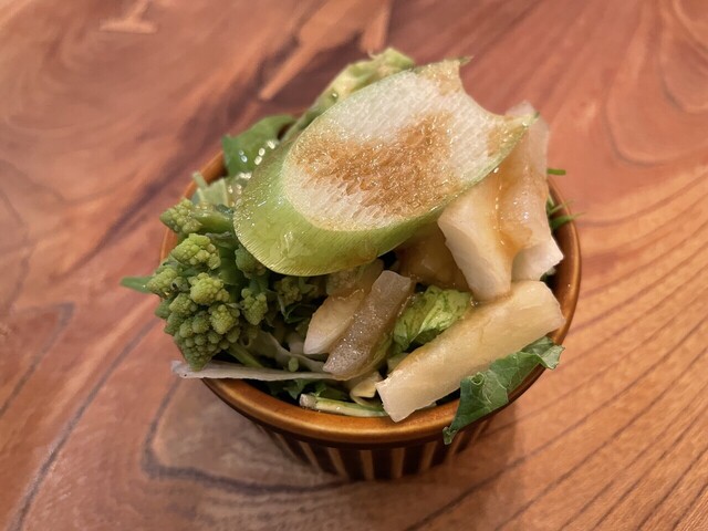 鮮度が良く驚くほどまともな美味しさで、お通しと言いつつも多くの店で出している有料のサラダを上回る品質です。
