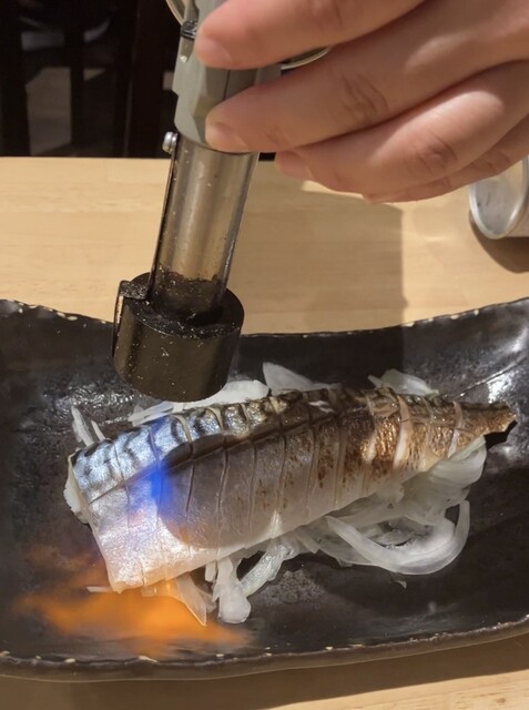 全員集まるまで、つまみで炙り塩サバとビールで乾杯。40分遅れで西口で迷子になったと連絡のあったメンバーが到着(笑