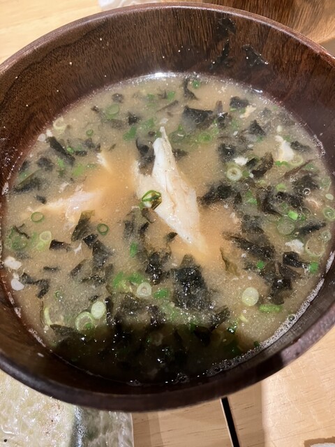 お通しがアサリではなく、キノコと数の子のお味噌汁になっていました。