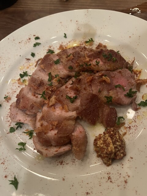 お料理が少ないタイミングで最後に赤ワインを注文したらお肉を持ってきてくれました。