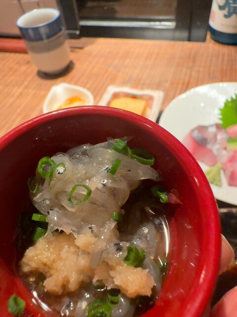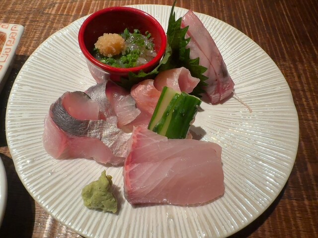 お刺身は生しらす、カツオ、あじ、金目鯛、カンパチ。生しらすが新鮮で美味、鉄板の金目鯛、あじ、カンパチ。そして戻り鰹かな?臭みがゼロで美味しくいただきました。